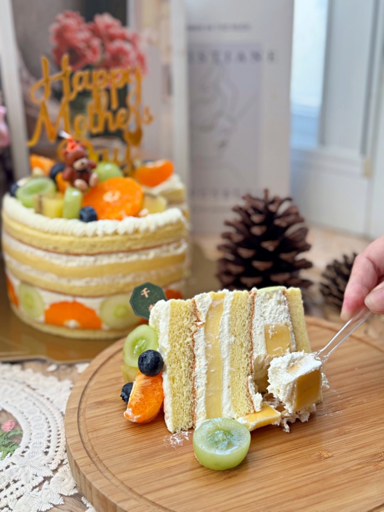 裸蛋糕系列中間會有一層新鮮水果、還有一層自製布丁!