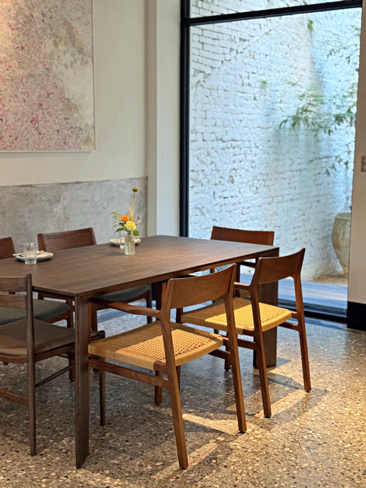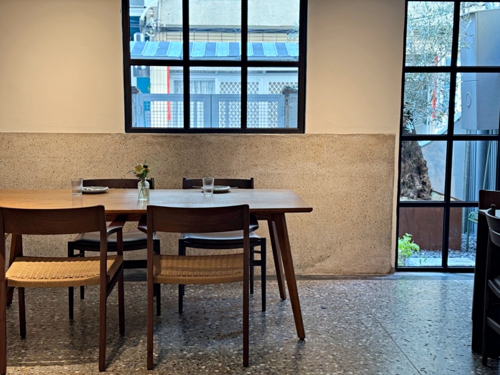 保留老宅特色的磨石子地板,搭配木頭桌椅格外有質感