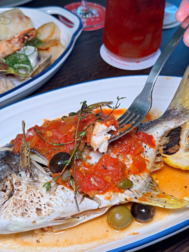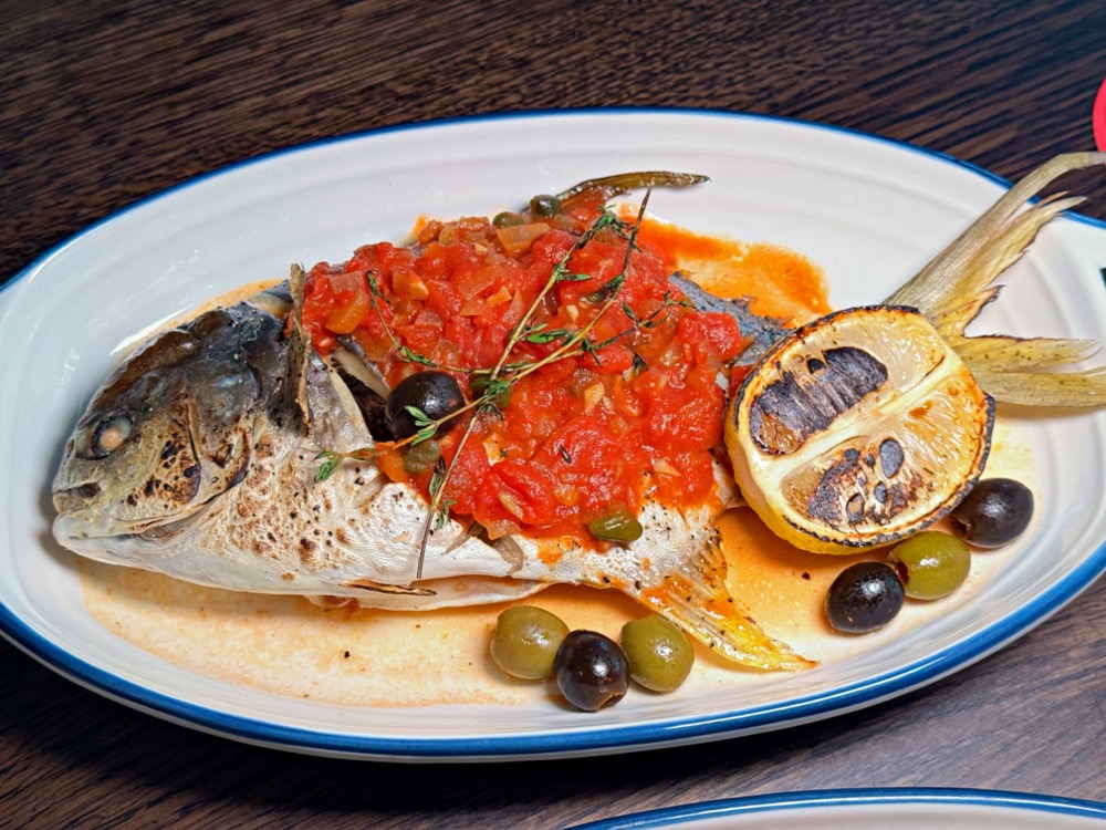 黃金鯧使用地中海料理的烹調方式,醬汁酸甜開胃,搭配肉質細嫩的黃金鯧,絲媽大大稱讚