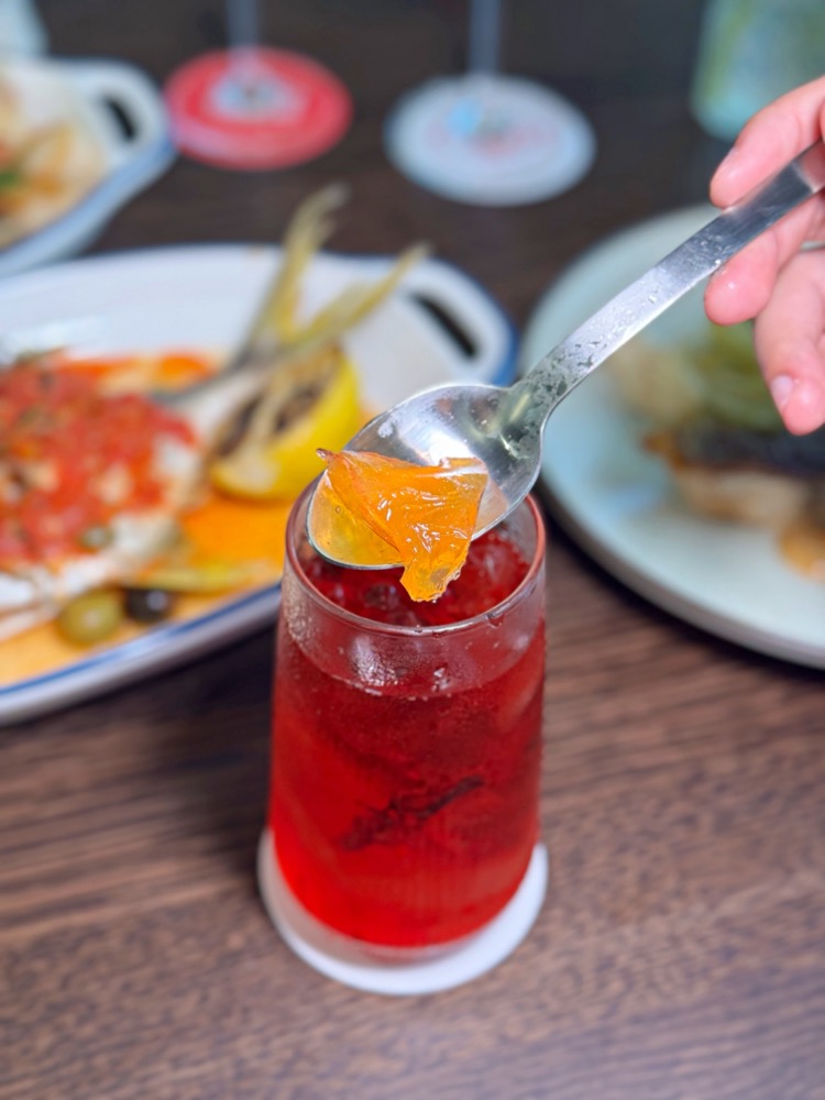 洛神花茶搭配魚凍!不過魚凍吃起來完全不會有腥味喔!就像是果凍一樣古溜好吃