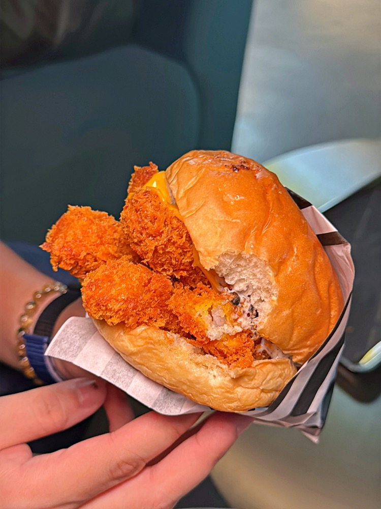 直接夾了五隻炸蝦欸!要多浮誇啦~嘴巴張到最大才能一口咬下