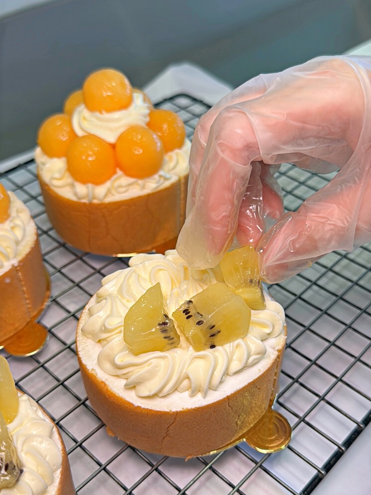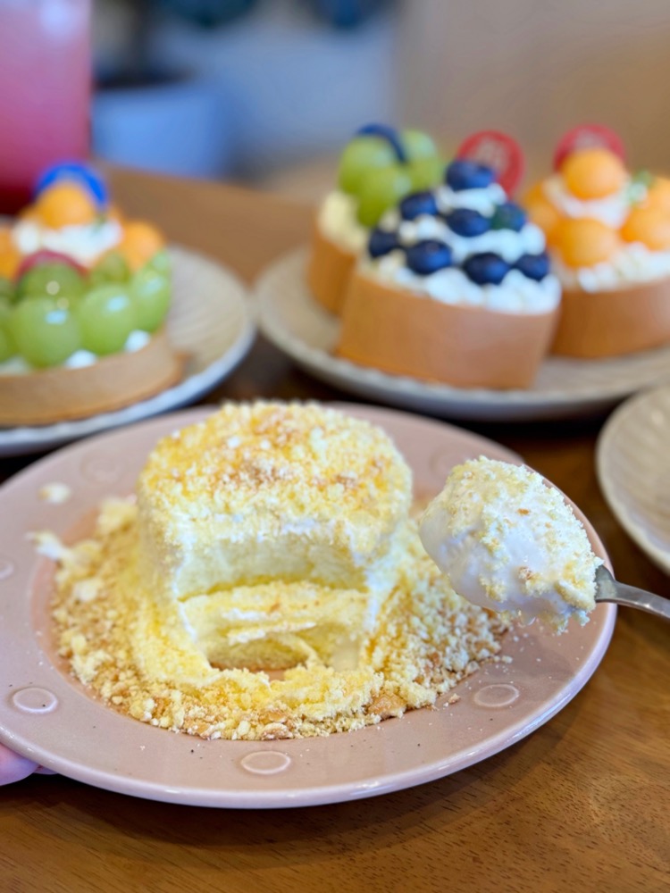 每一顆蛋糕都相當細緻!基底是生乳捲,接著會擠上生乳再擺上當季的新鮮水果,每種水果都很新鮮!超推~