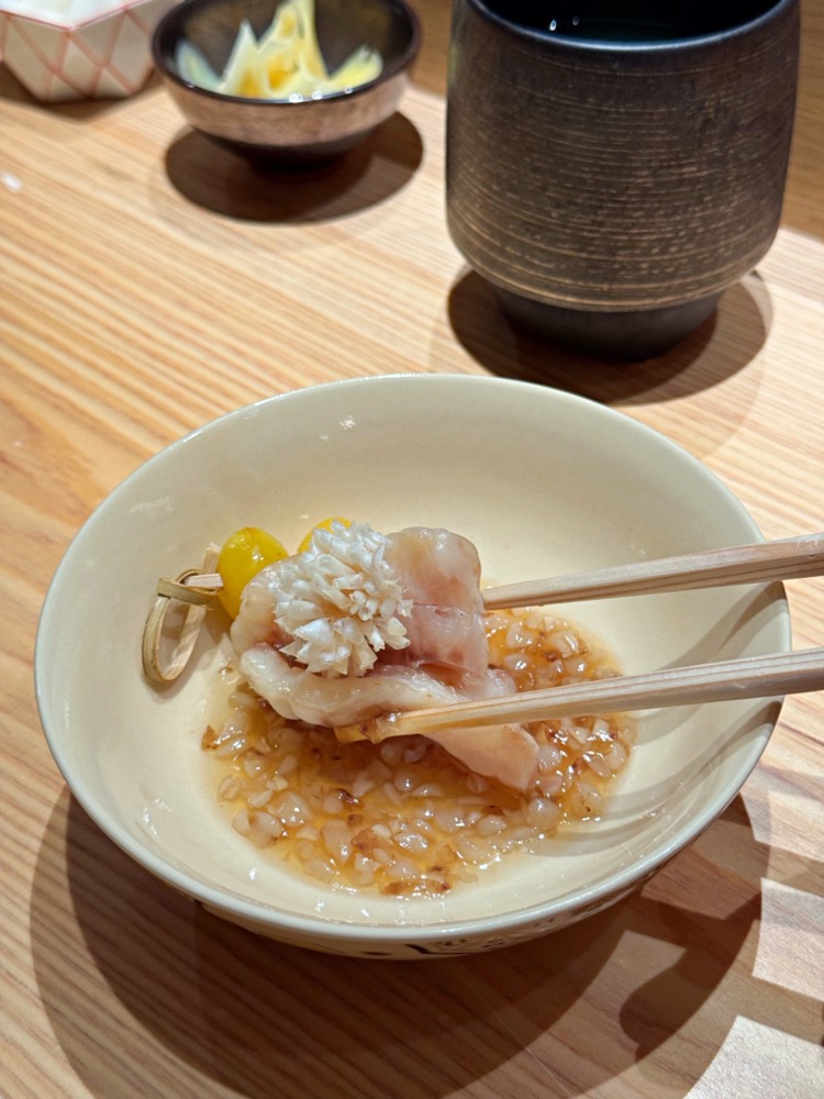 外皮有稍微炙燒過,可以吃到外皮炙燒香氣,魚肉本身相當有彈性呢!
