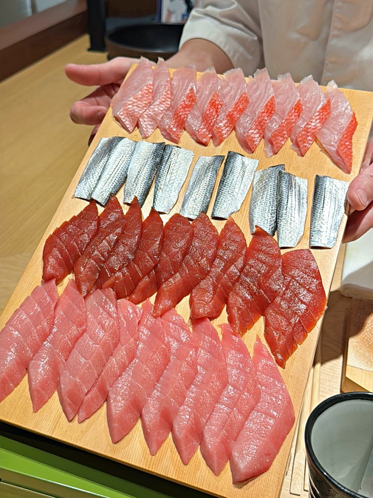 坐在板前可以看見師傅切生魚片、製作握壽司等等,真的是像是在看一場藝術表演呢!
