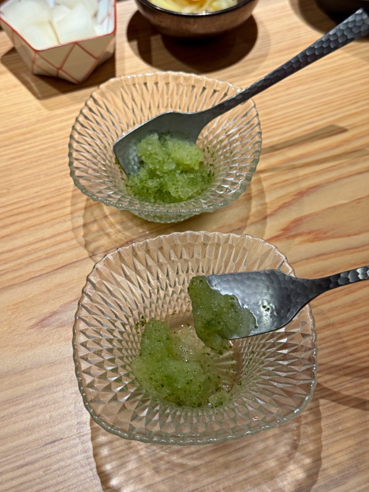進入握壽司之前,會先端上紫蘇柚子冰沙,酸甜酸甜讓味蕾重置一下!