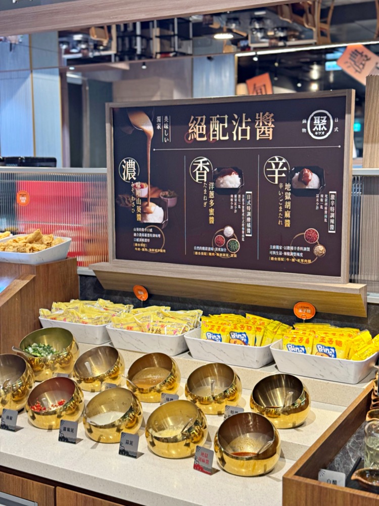 醬料自助區選擇搭配也很多元,可以依照自己喜好做調配,或是依照上頭的黃金比例做調製~
