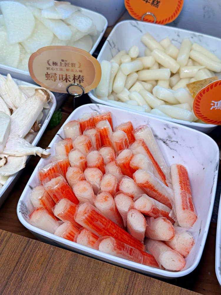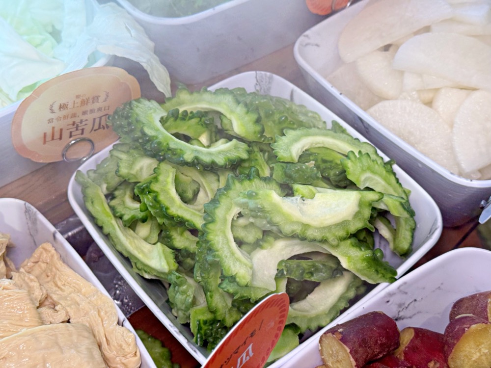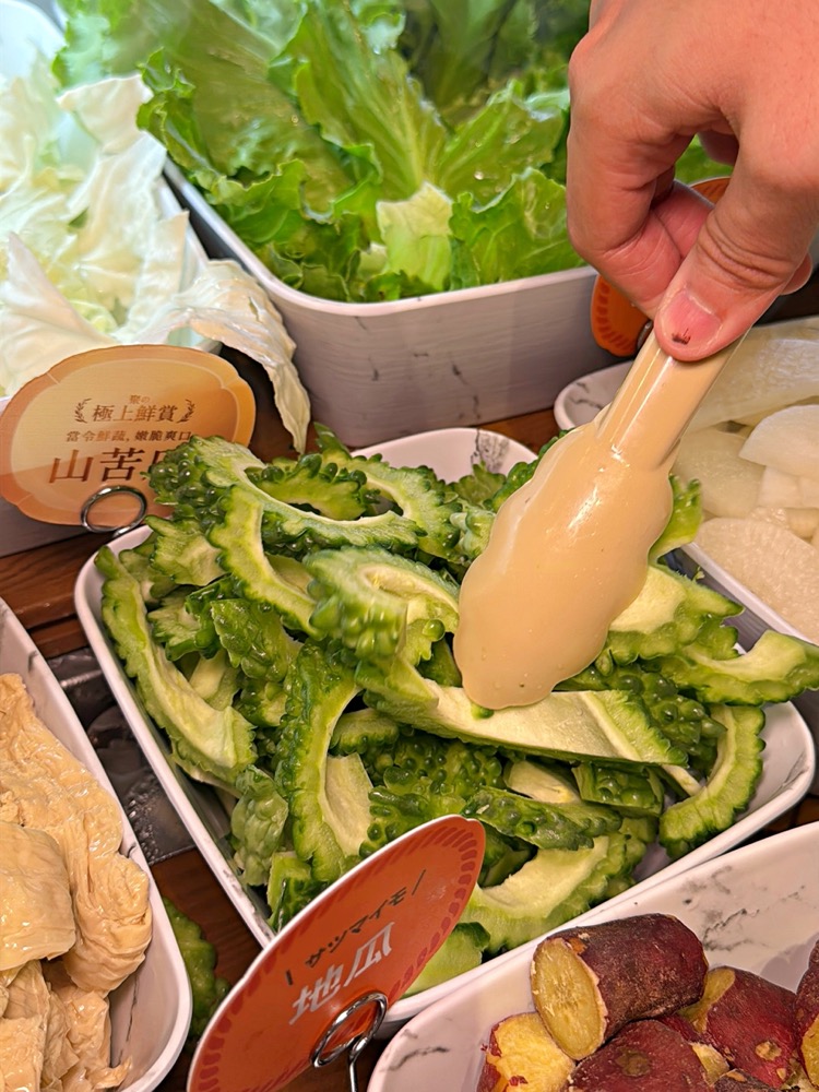 這次蔬菜自助吧還有新增菜色喔!多了山苦瓜、蟳味棒、鮮蝦海鮮漿
