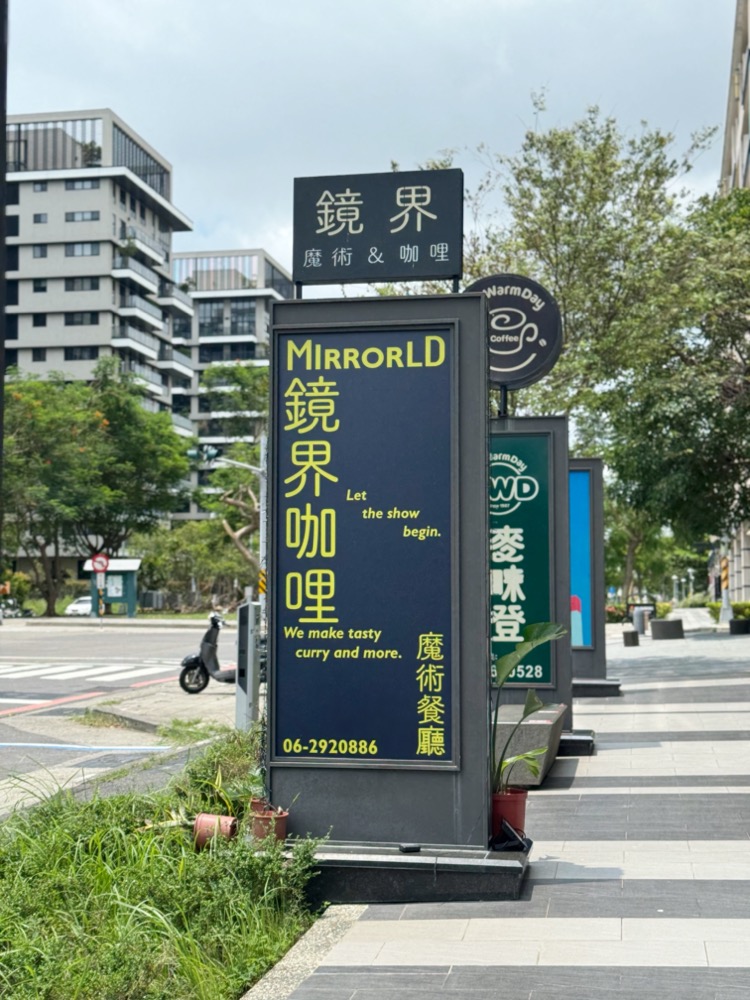 《Mirrorld 鏡界咖哩魔術餐廳》位在水交社路跟大成路交叉口附近,鄰近老鄧牛肉麵,麥味登隔壁,光是好停車這點我就先給他加個100分