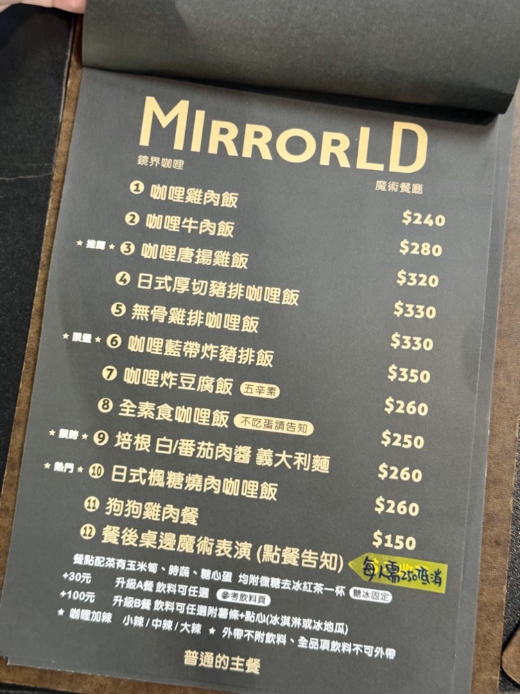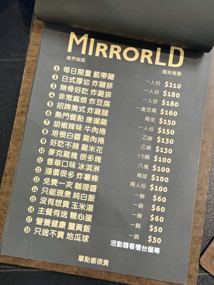 《Mirrorld 鏡界咖哩魔術餐廳》菜單menu