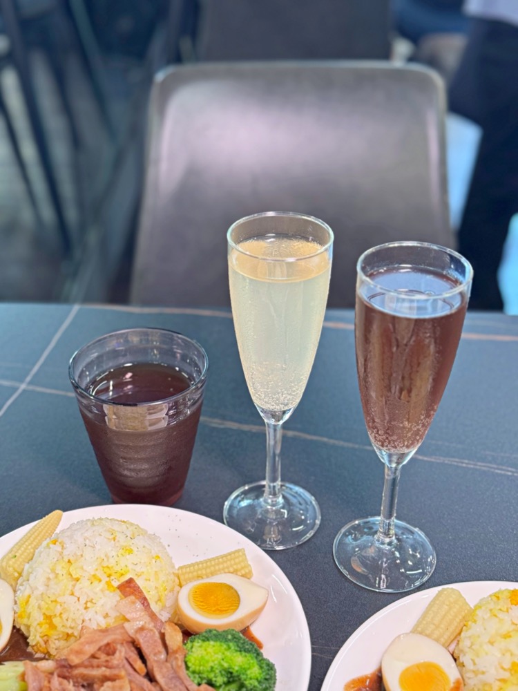 升級套餐可以任選葡萄氣泡水、蜜桃氣泡水喔!