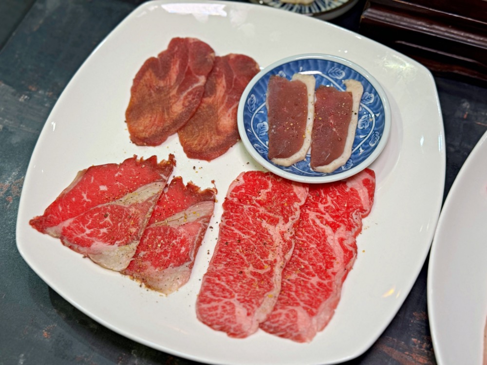 櫻桃鴨、牛小排、Srf極黑牛霜降、椒鹽薄切牛舌