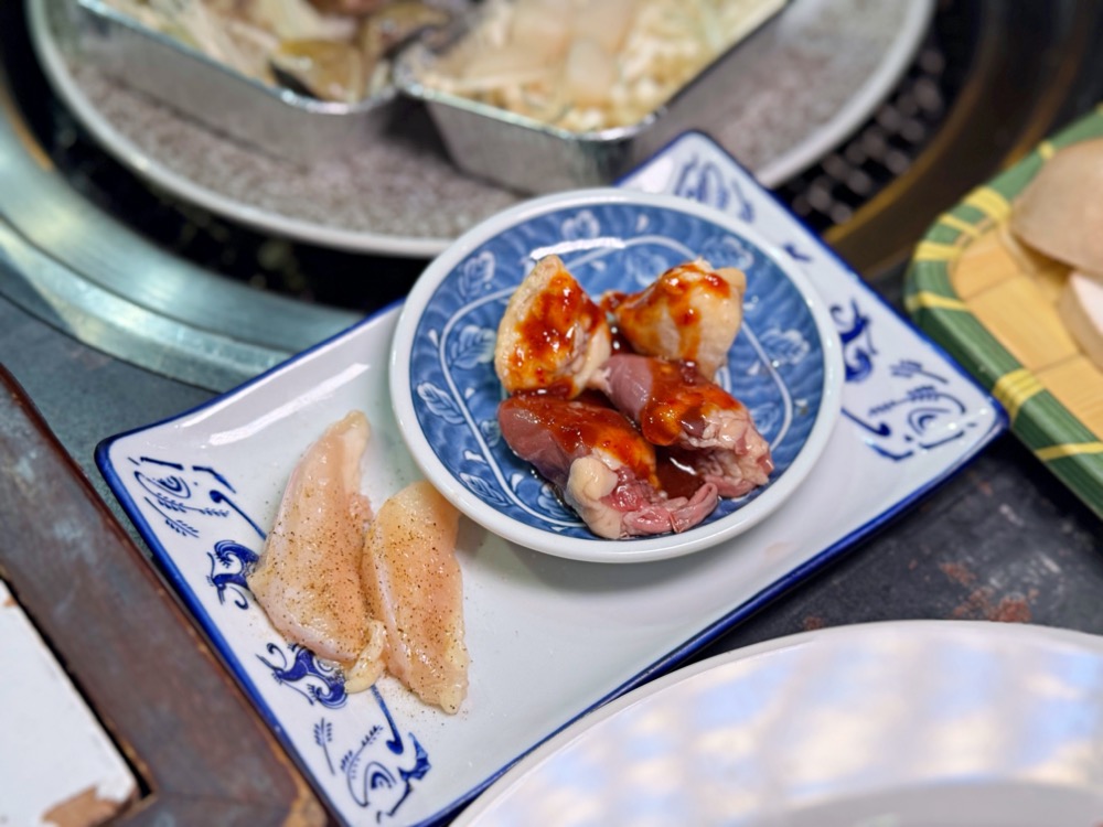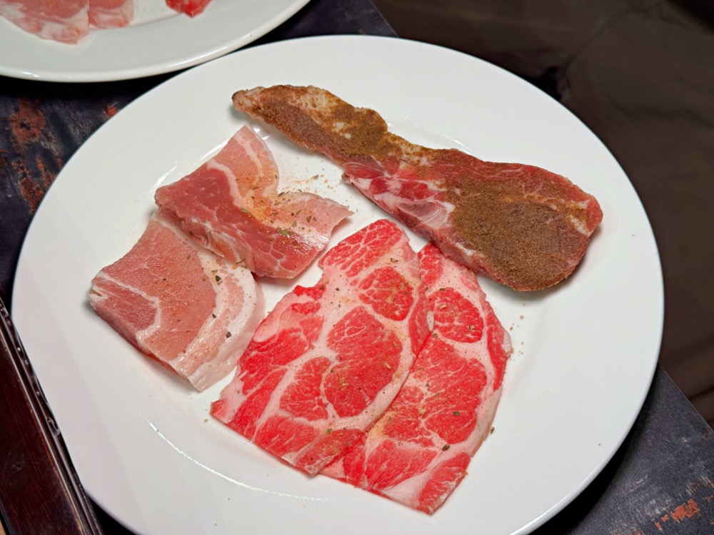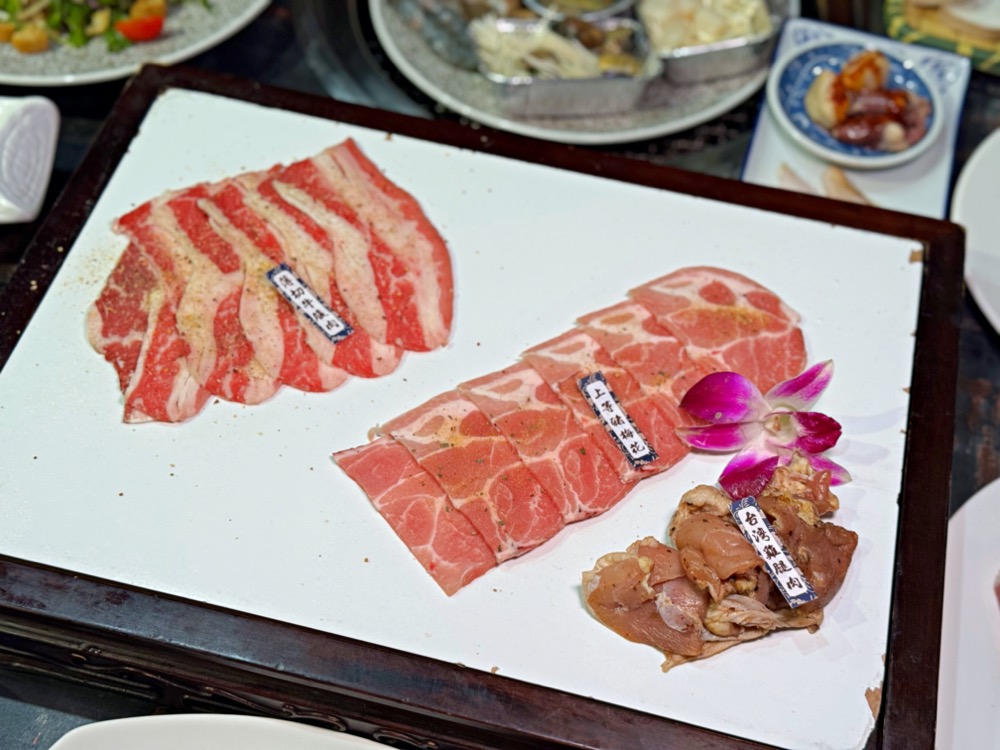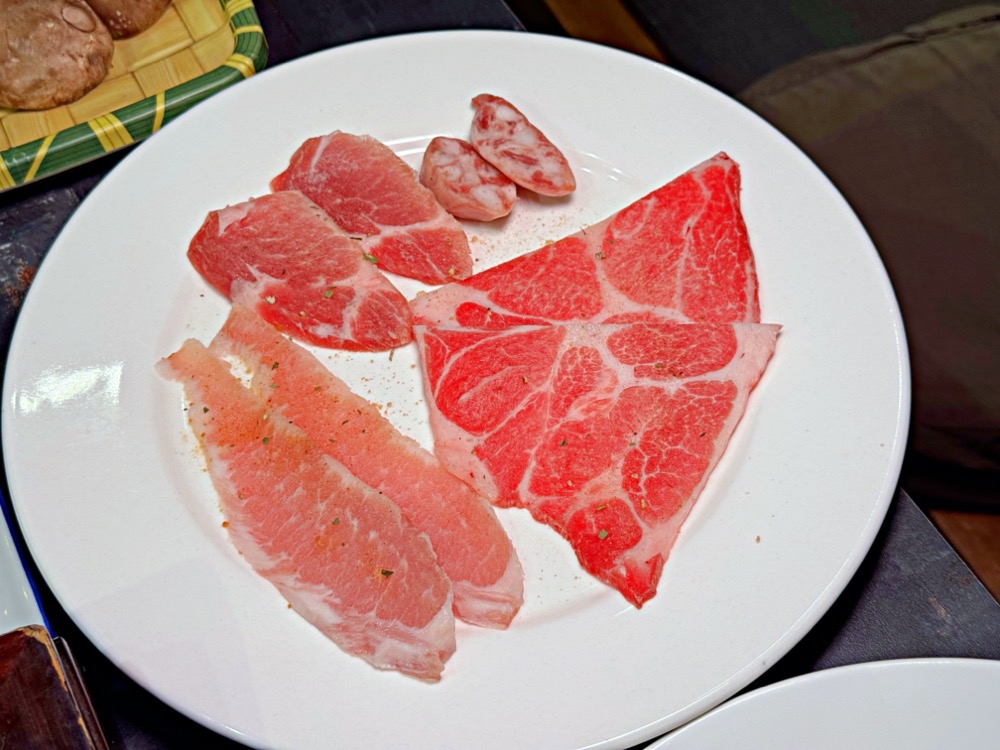 會先端上一盤肉肉!有薄切牛腹肉、上等豬梅花、台灣雞腿肉