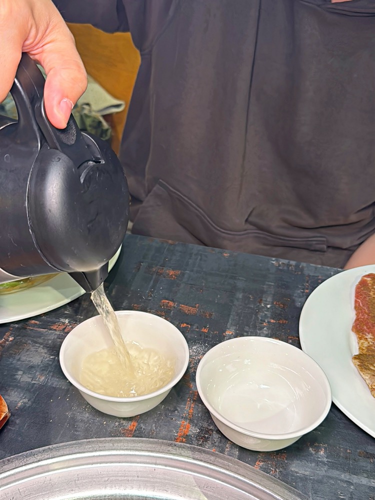 入座會先端上鮮魚湯暖暖胃!我喜歡他們家的鮮魚湯很好喝~