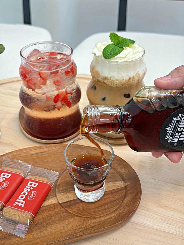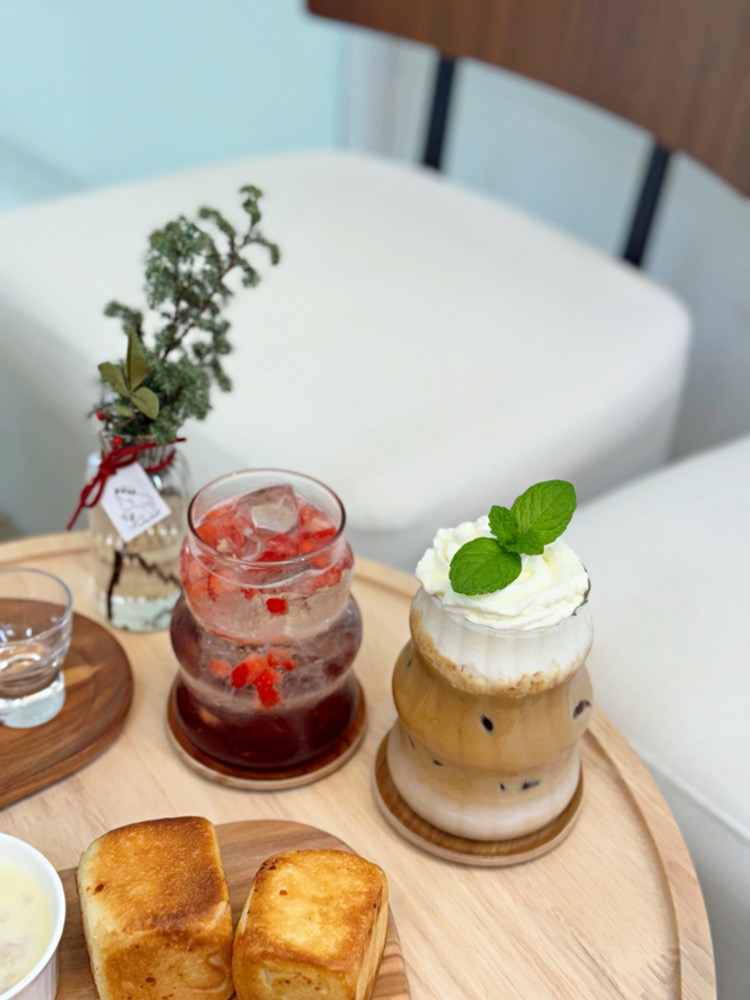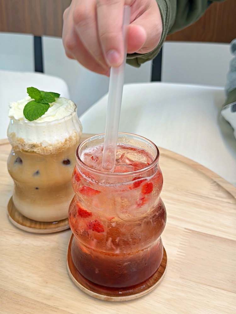 裡頭有新鮮草莓果粒,喝起來酸甜開胃好消暑呢!