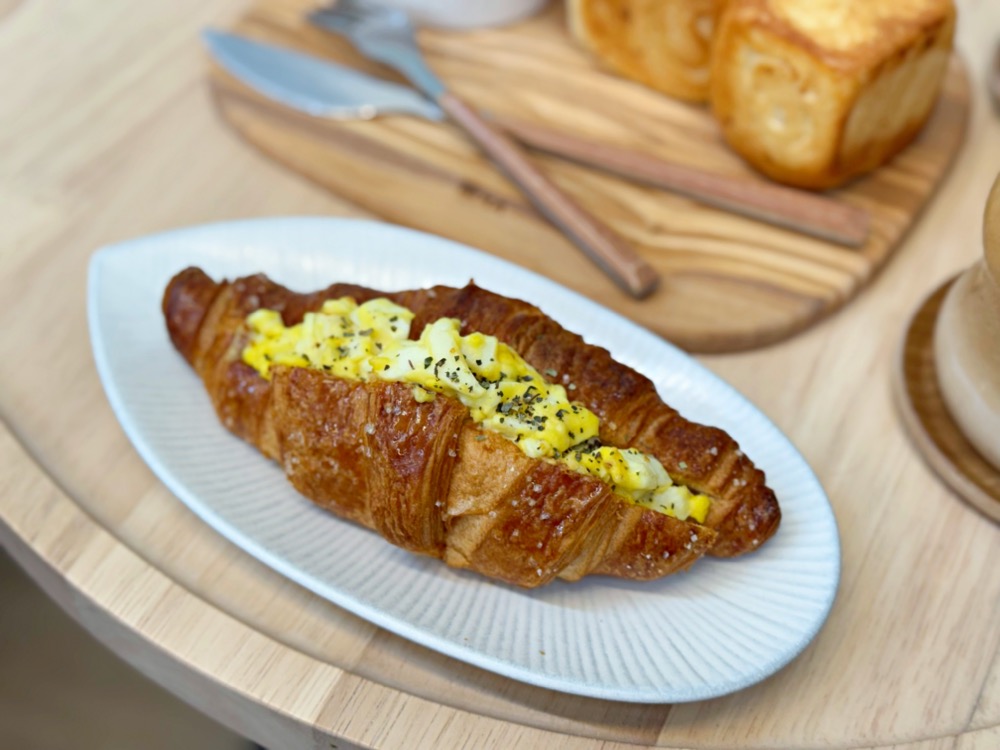 有時候中午不想吃太多,超適合來個蛋沙拉可頌,酥脆的可頌與滿滿的蛋沙拉吃起來好滿足