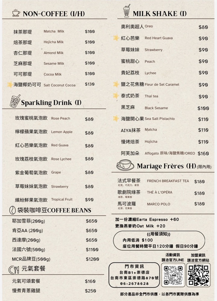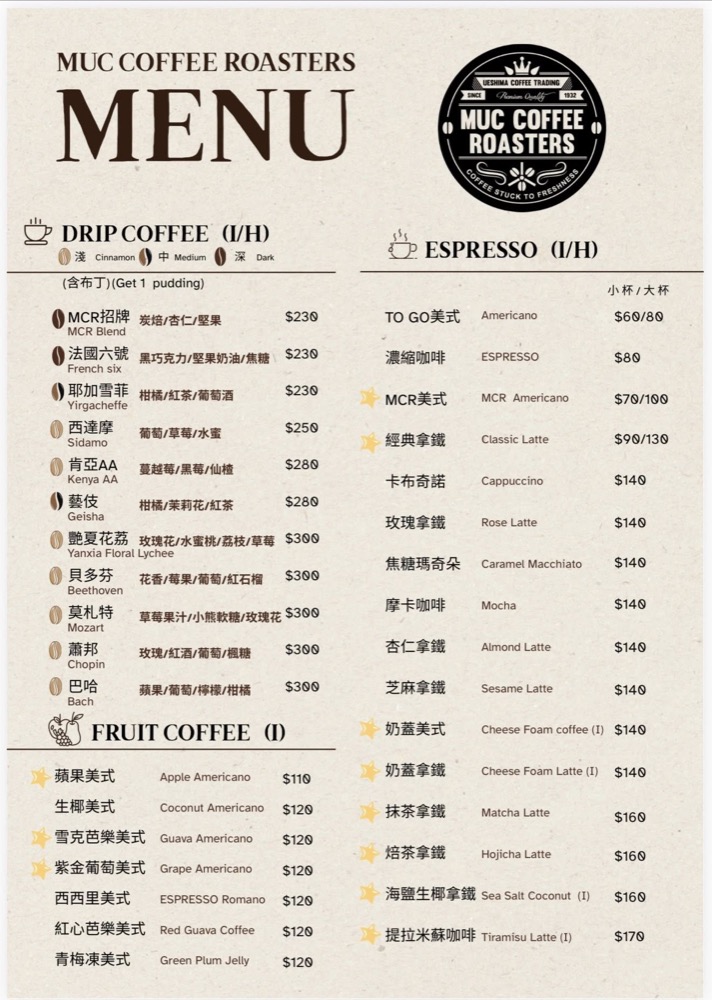 《漫悠客咖啡b1+崇德店》菜單menu