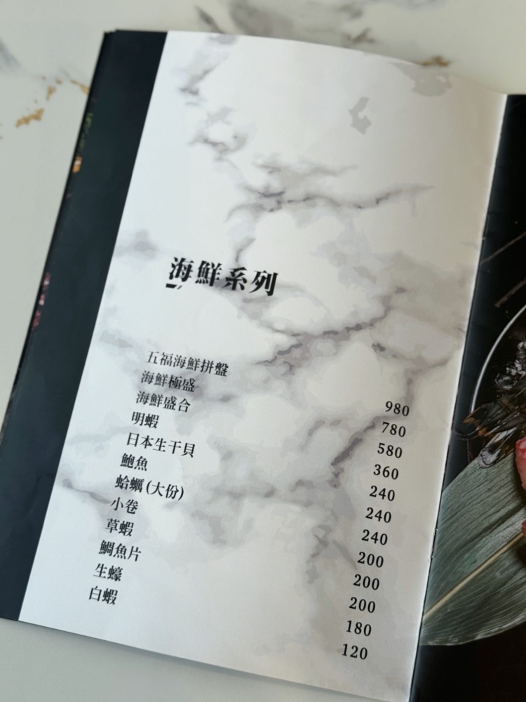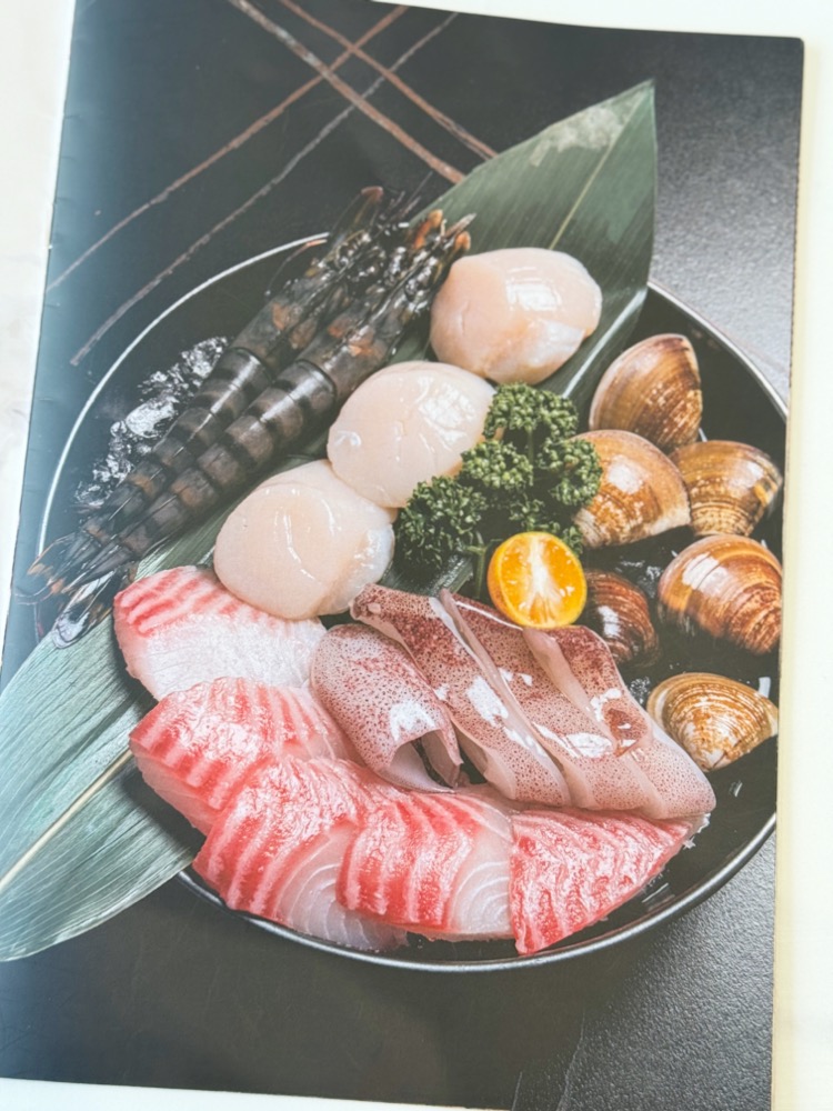 有大草蝦、現流中卷、鯛魚片、大蛤蜊、大干貝