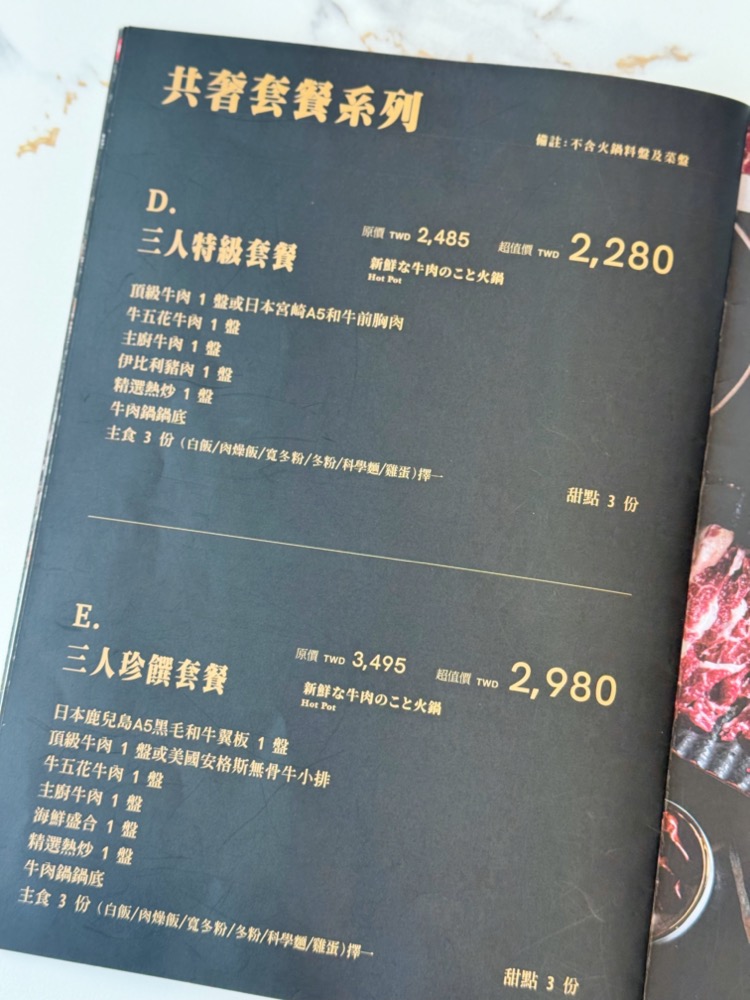 《哞麻溫體牛肉湯/火鍋》菜單menu