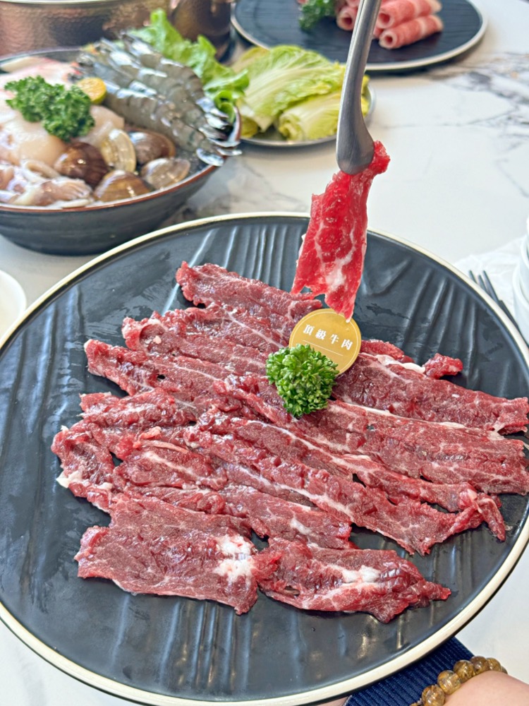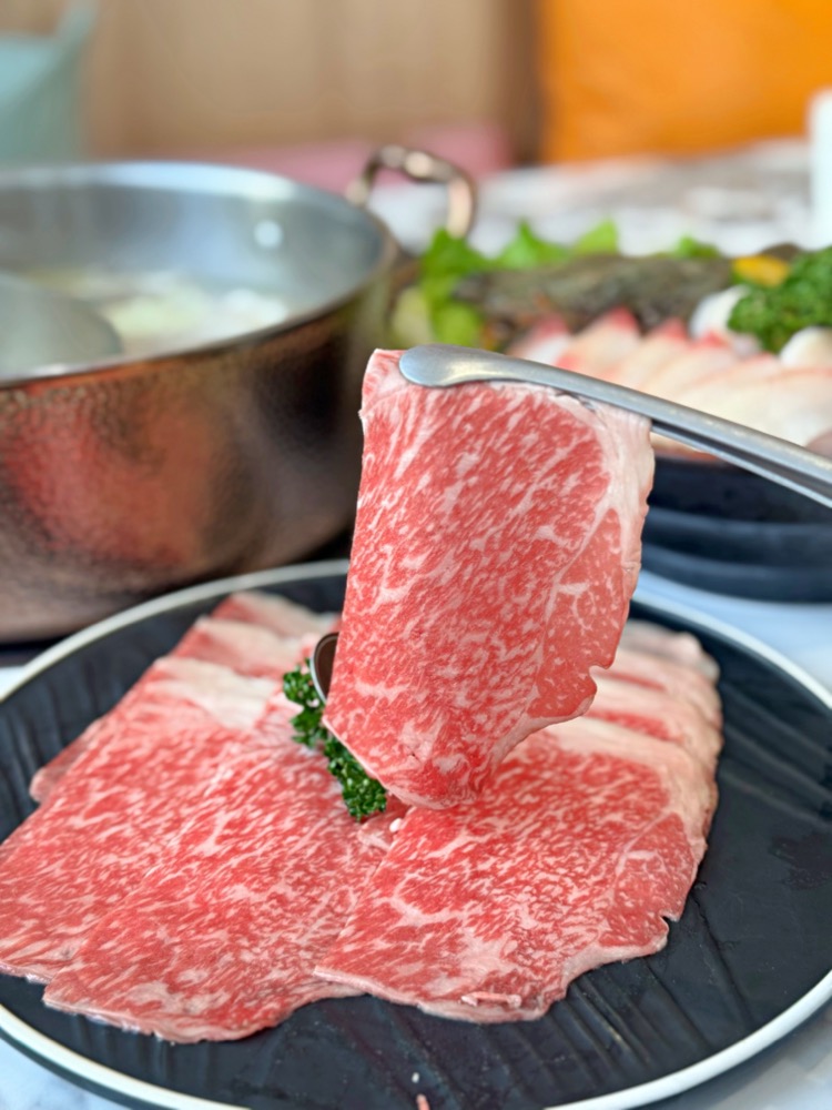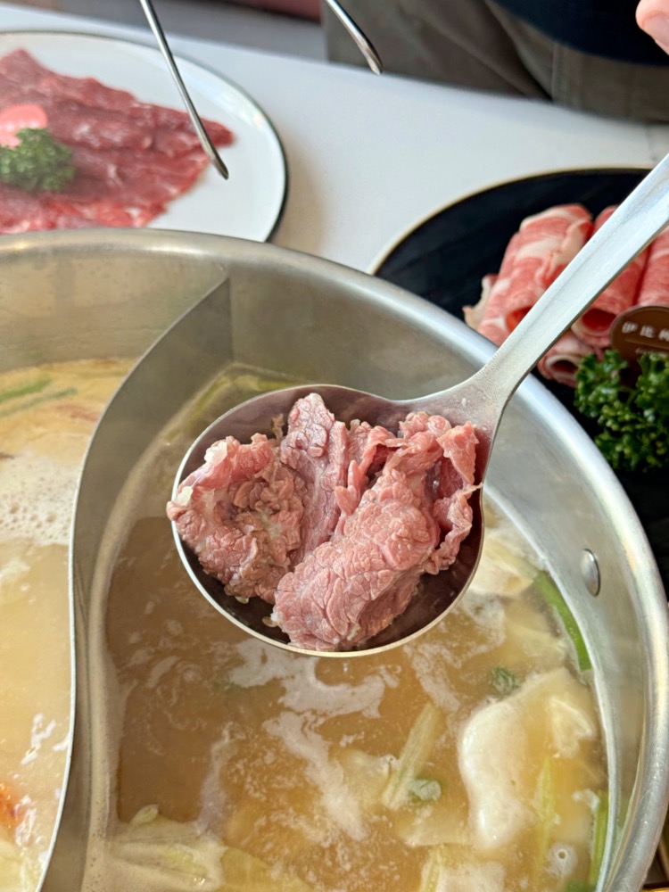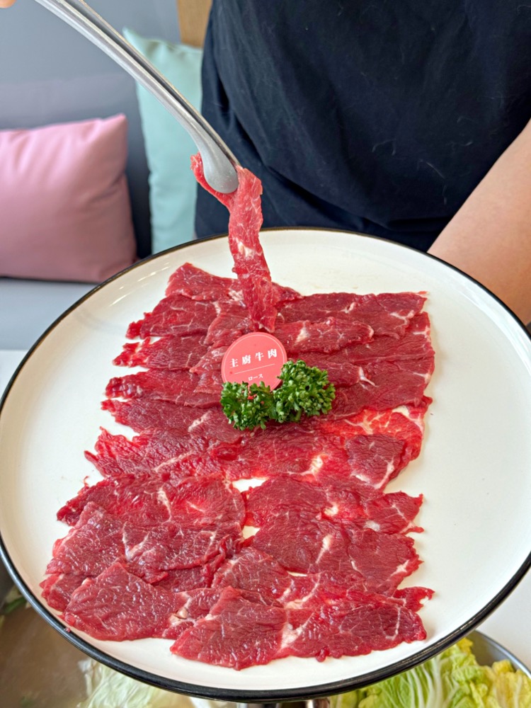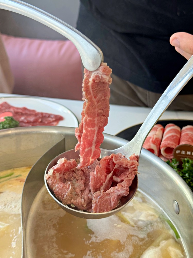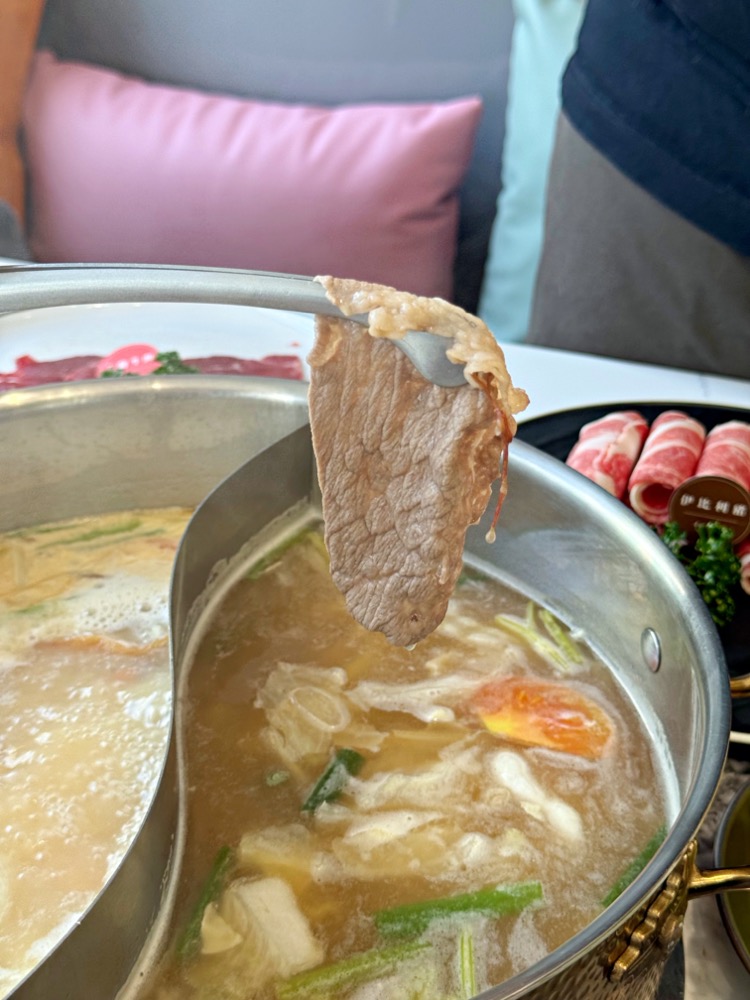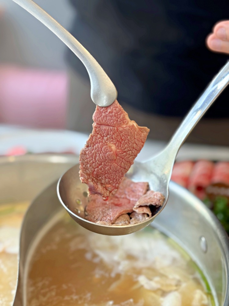 現切的新鮮溫體牛只要放入鍋中稍微涮個幾下,呈現粉嫩色澤就可以吃囉,口感軟嫩好吃