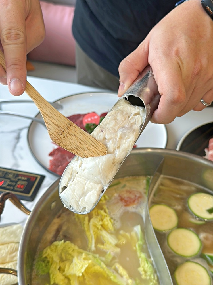 每一塊都很大塊!非常有份量感,稍微涮一下起鍋,入口吃起來相當嫩口!單吃很讚,沾醬也很不錯~