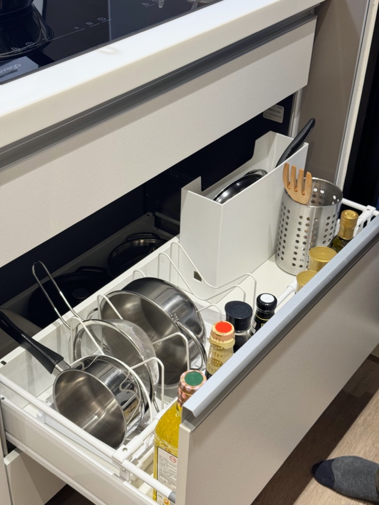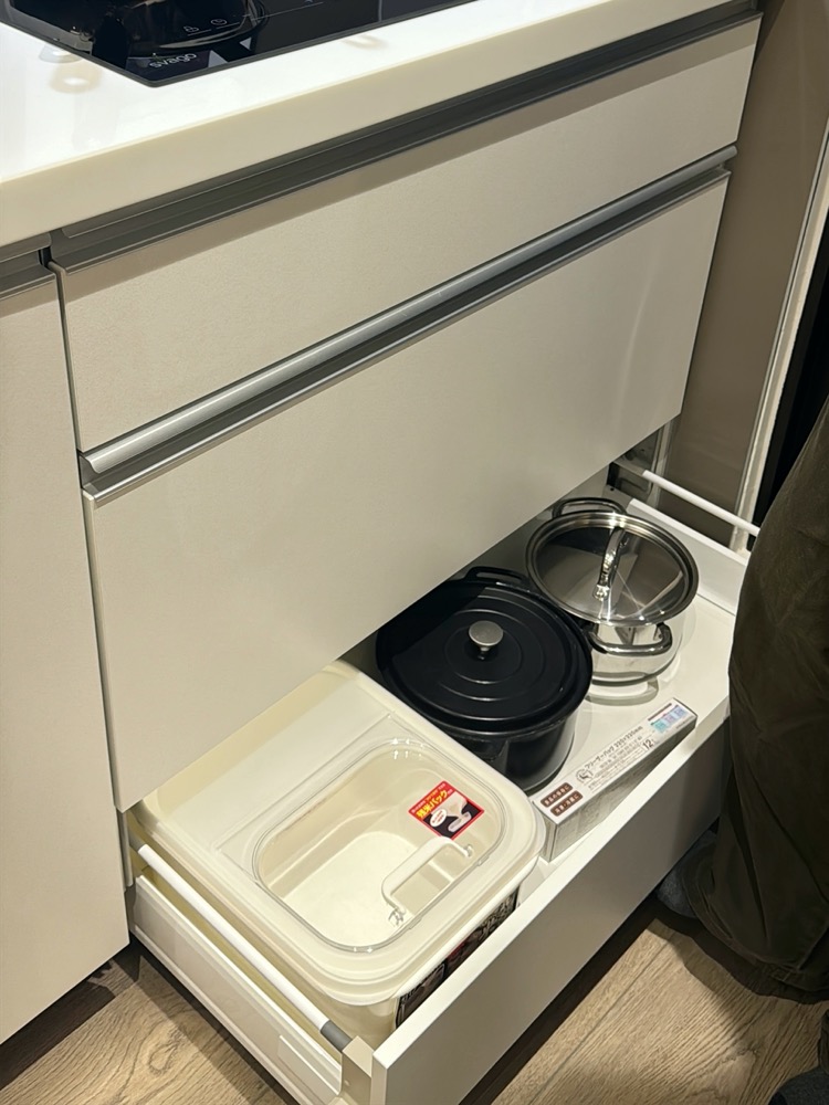 日系廚具收納做得很足,不浪費每個角落!一體成型不鏽鋼桶身也好清潔好保持~