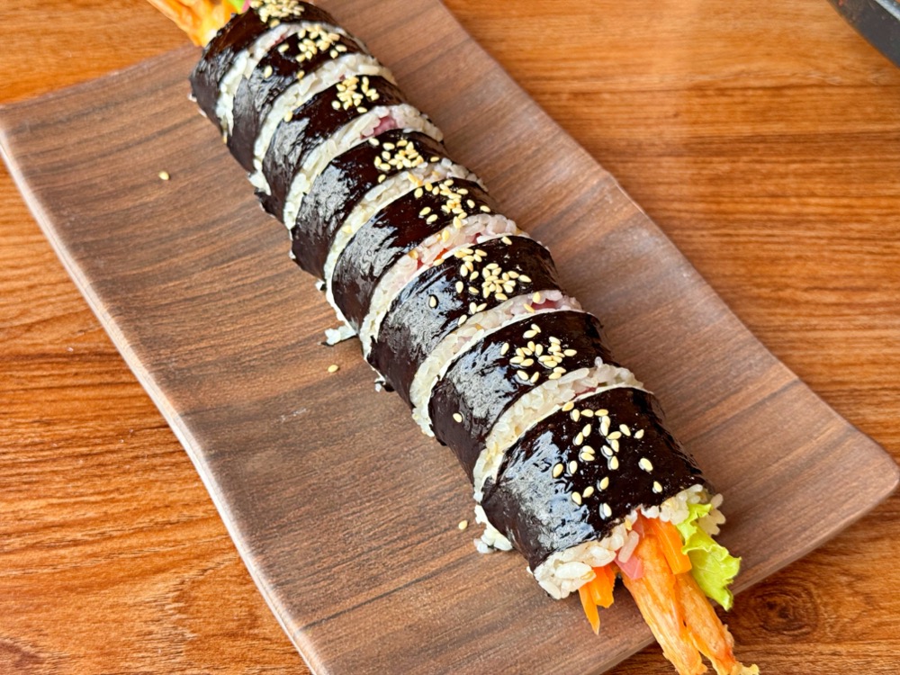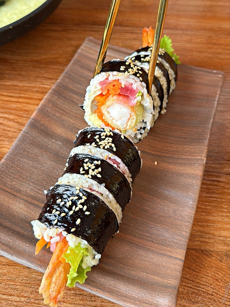 他們家必點的飯卷,裡頭可以吃到飽滿的餡料,超推炸蝦口味,炸蝦超大隻的!