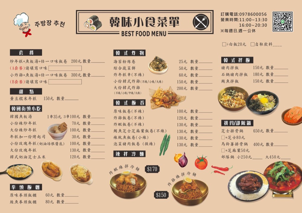 現在不只有有辣炒年糕、魚板湯、拳頭飯、韓式飯卷、炸物,還多了冷麵、韓式拌飯、部隊鍋喔!