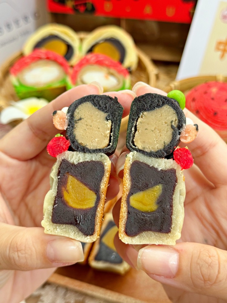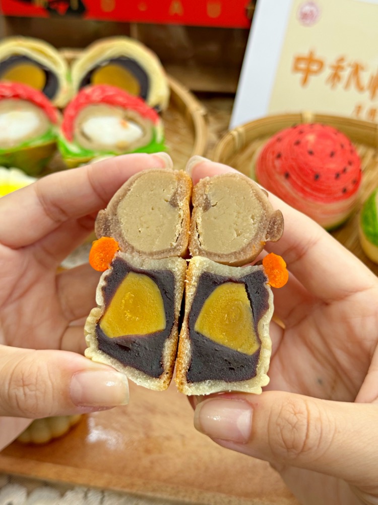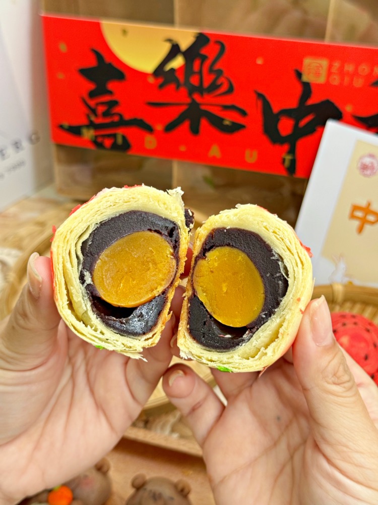 裡頭是芋泥+烏豆蛋黃,吃起來口齒留香,很適合搭配熱茶一起享用喔