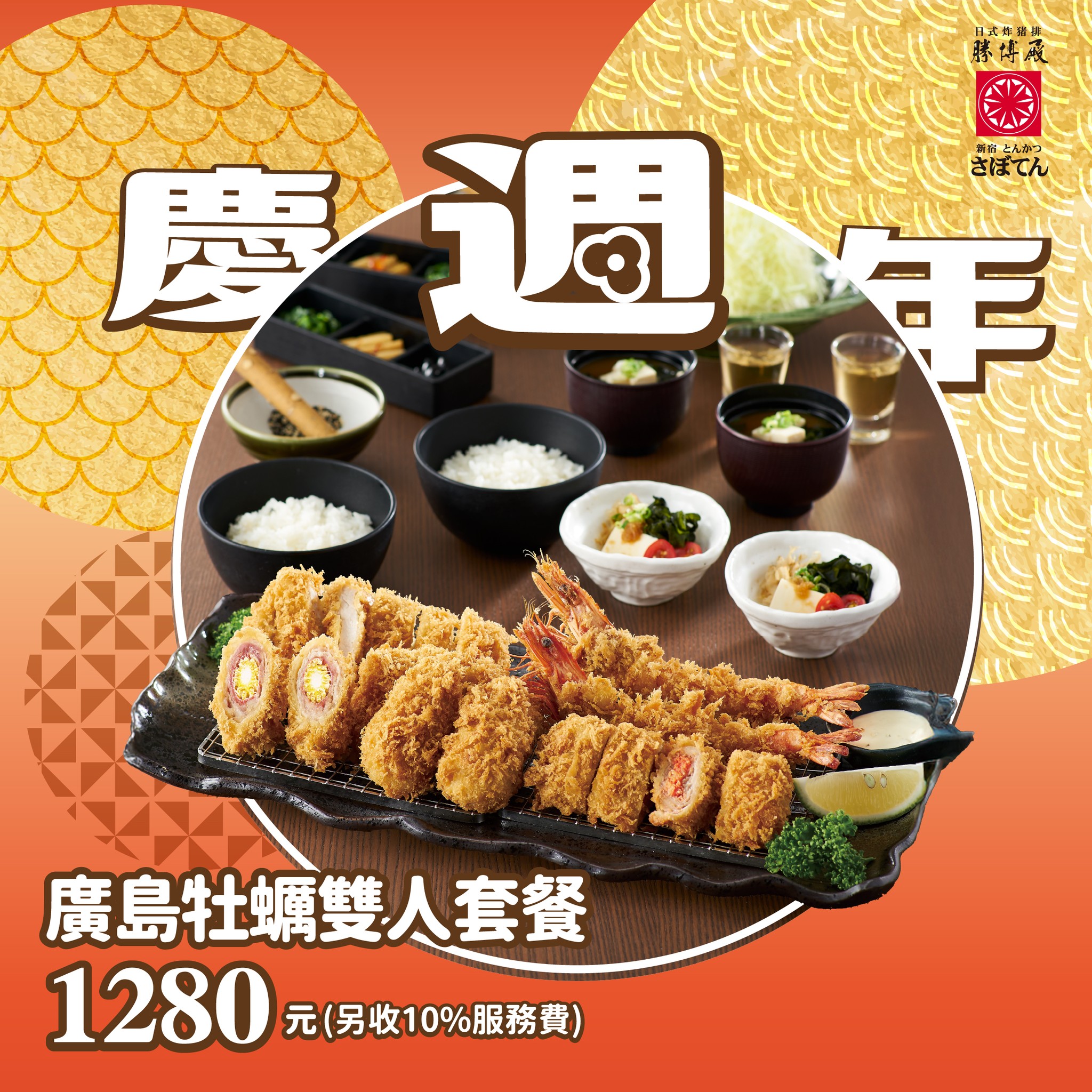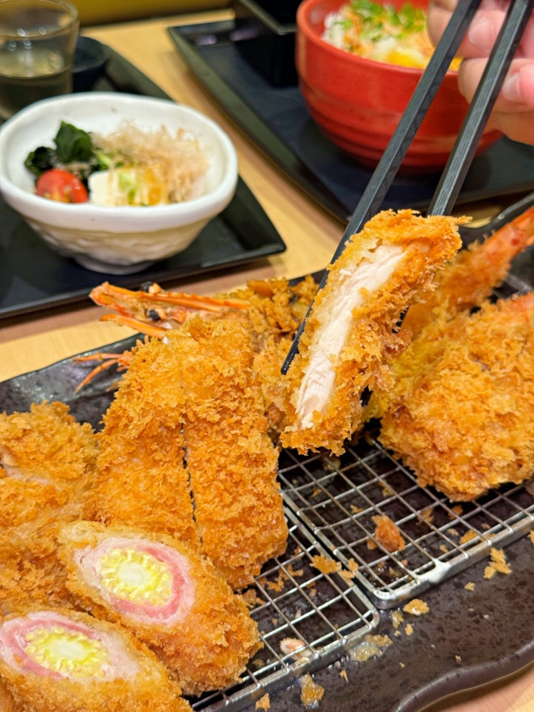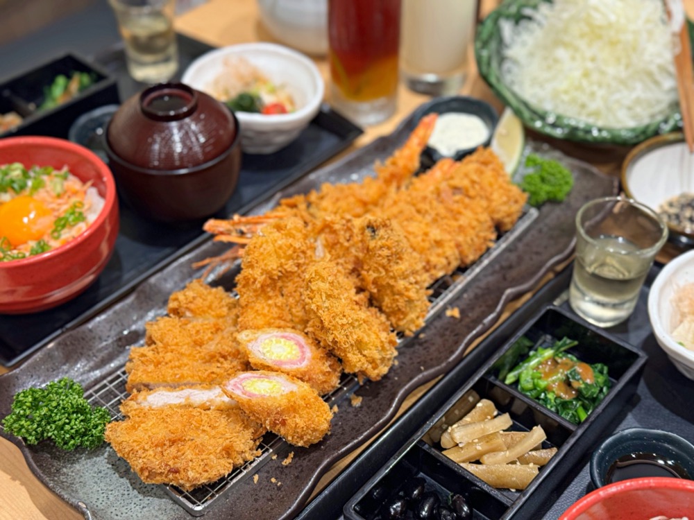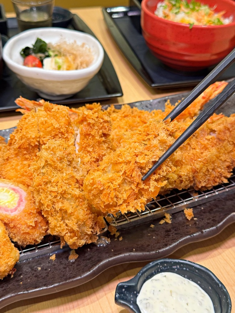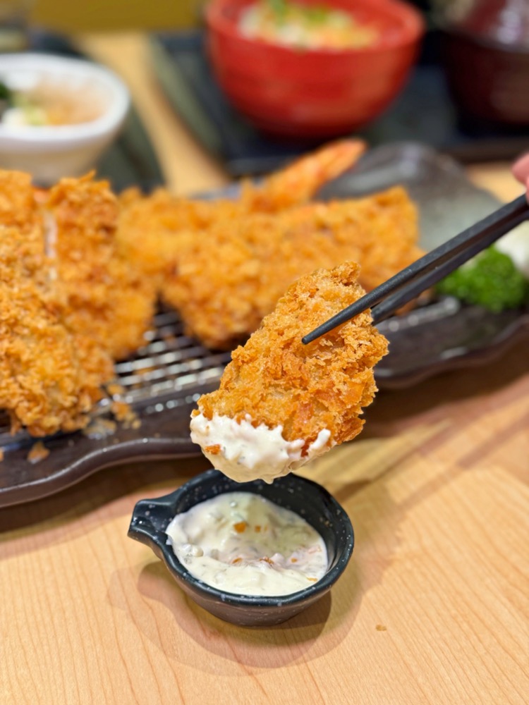 這次雙人套餐真的份量十足,除了有廣島大牡蠣以外,還有香脆鮮蝦、脆嫩雞排、腰內豬排、千層錦等等!