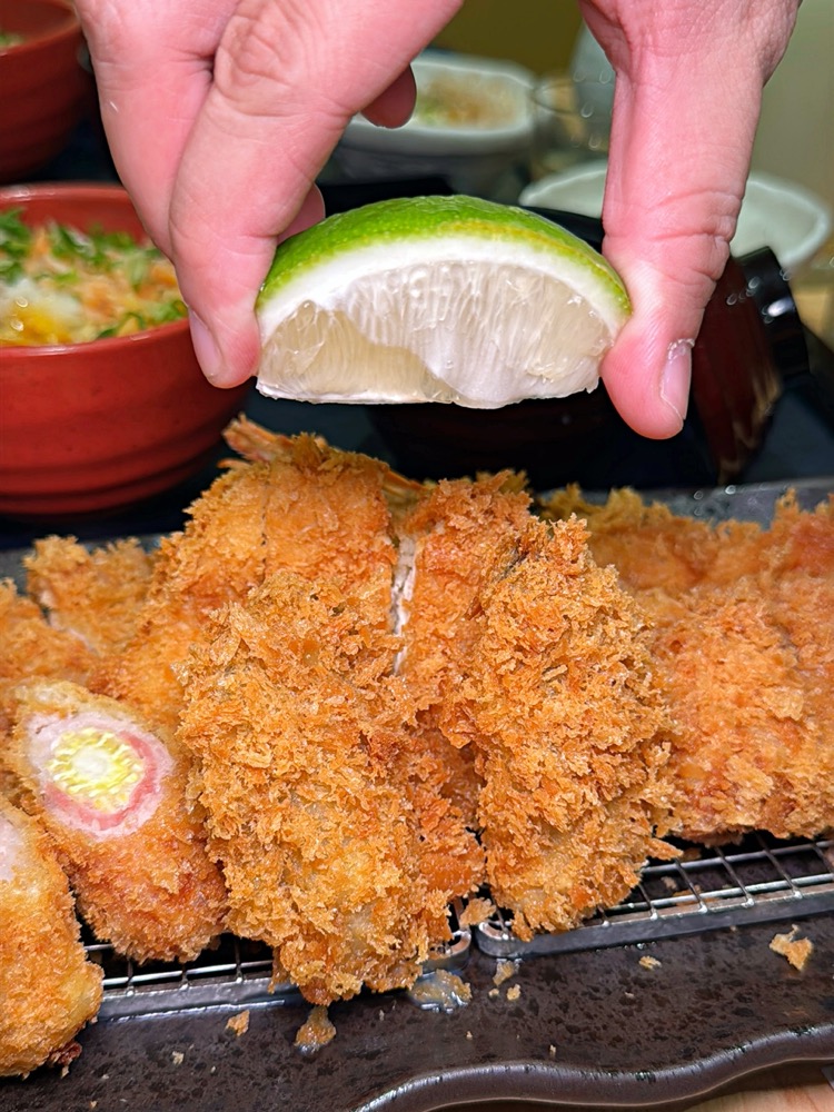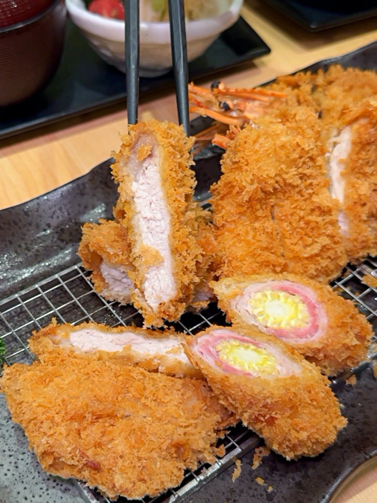 使用熟成豬中肌肉纖維與脂肪分佈均稱的里脊肉,及口感柔嫩的腰內肉,再裹上新鮮麵包粉去炸,一口咬下可以品嘗到酥脆口感,肉質軟嫩不乾柴還保有水份
