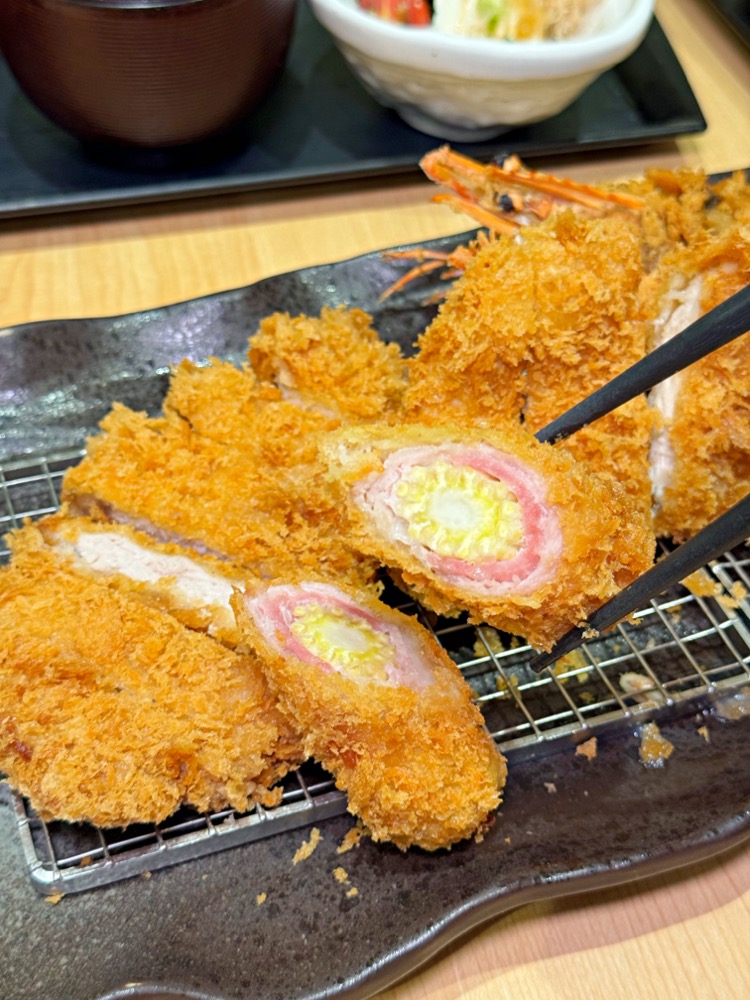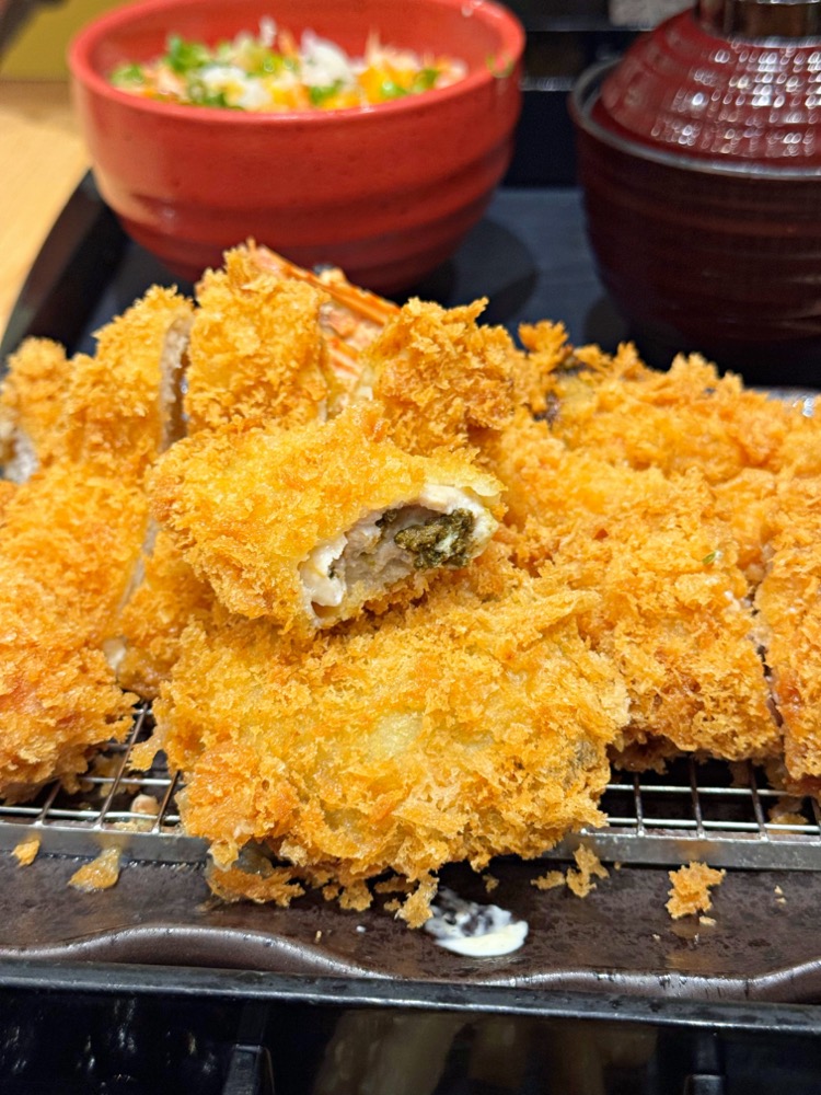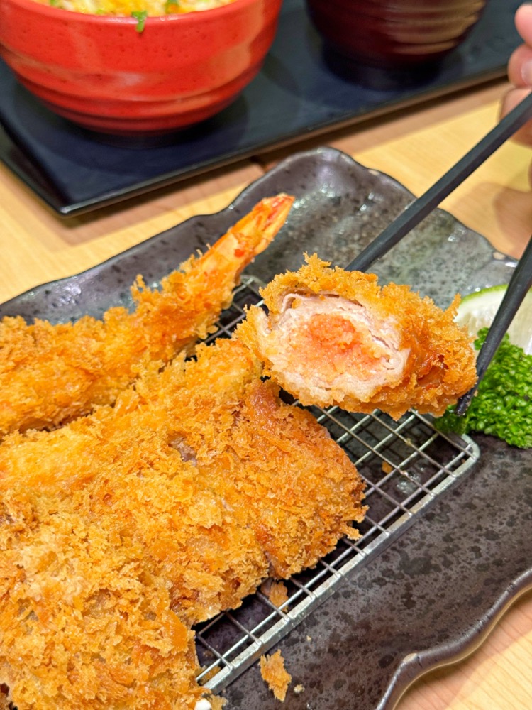 裡頭可以吃到炸豬排的口感,最令人驚豔的就是中間的明太子,整體相當和諧涮嘴喔!