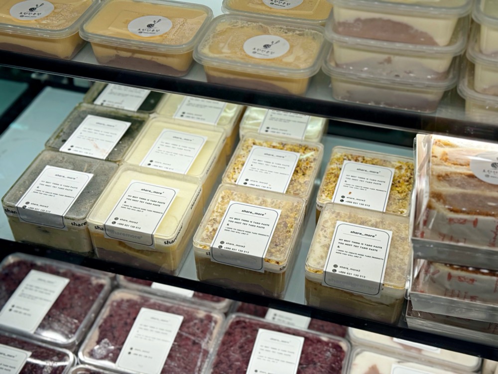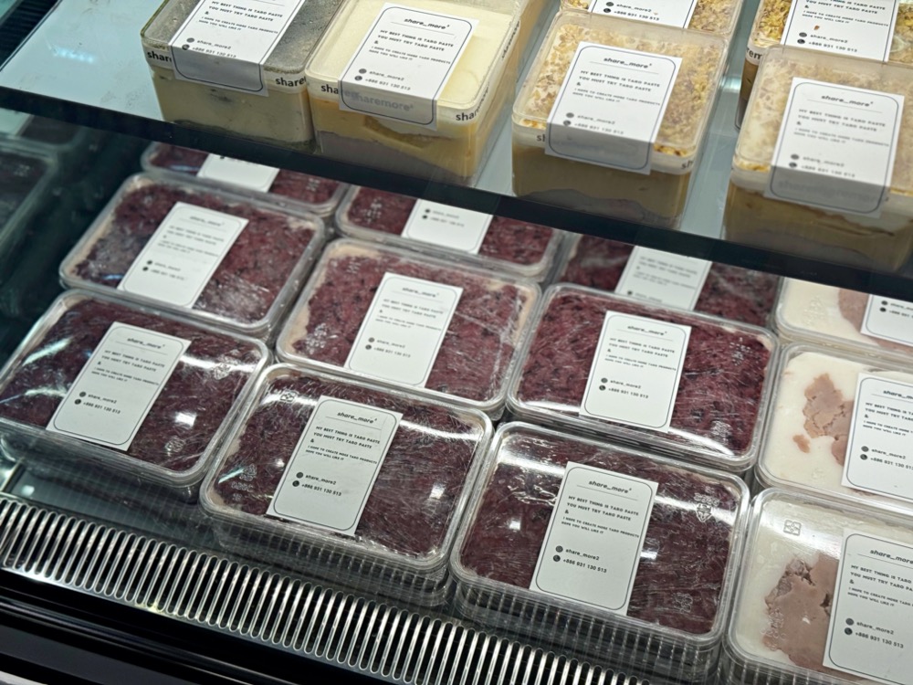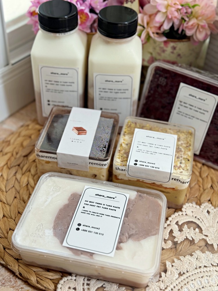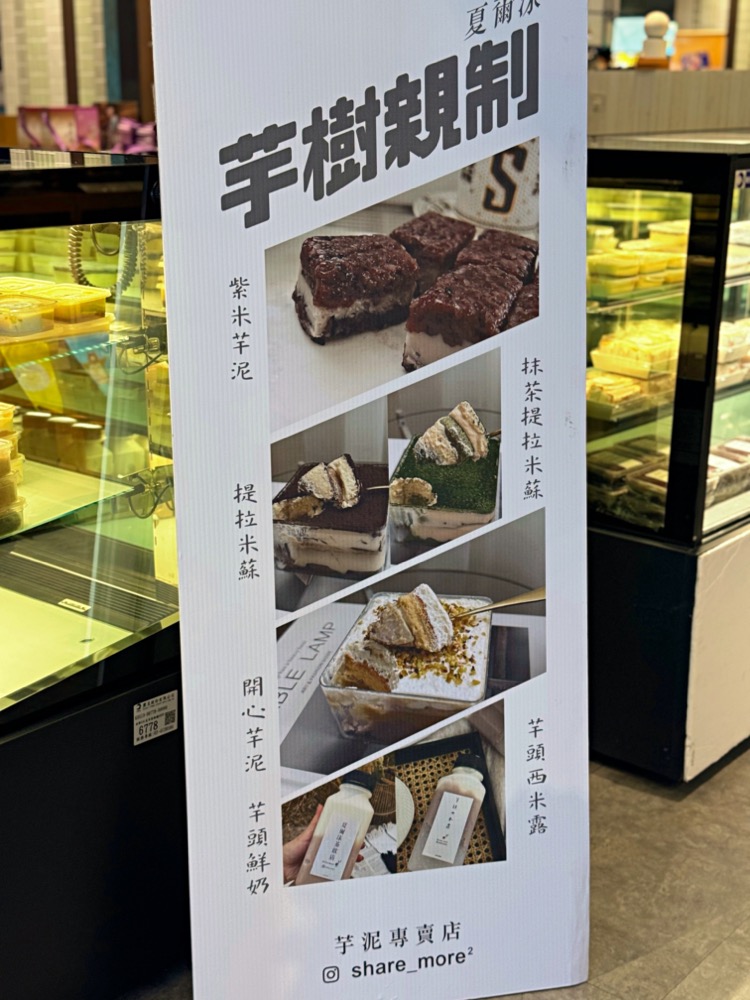 有芋泥奶酪、芋泥麻糬、雞蛋布丁、芋泥盒子等等