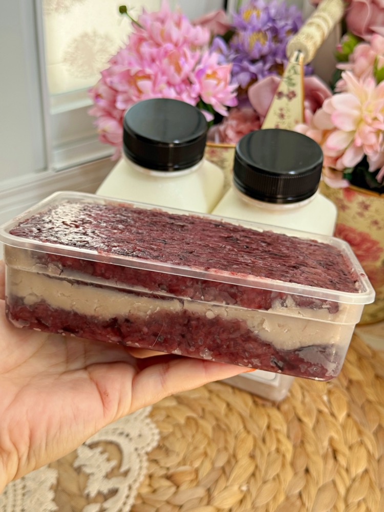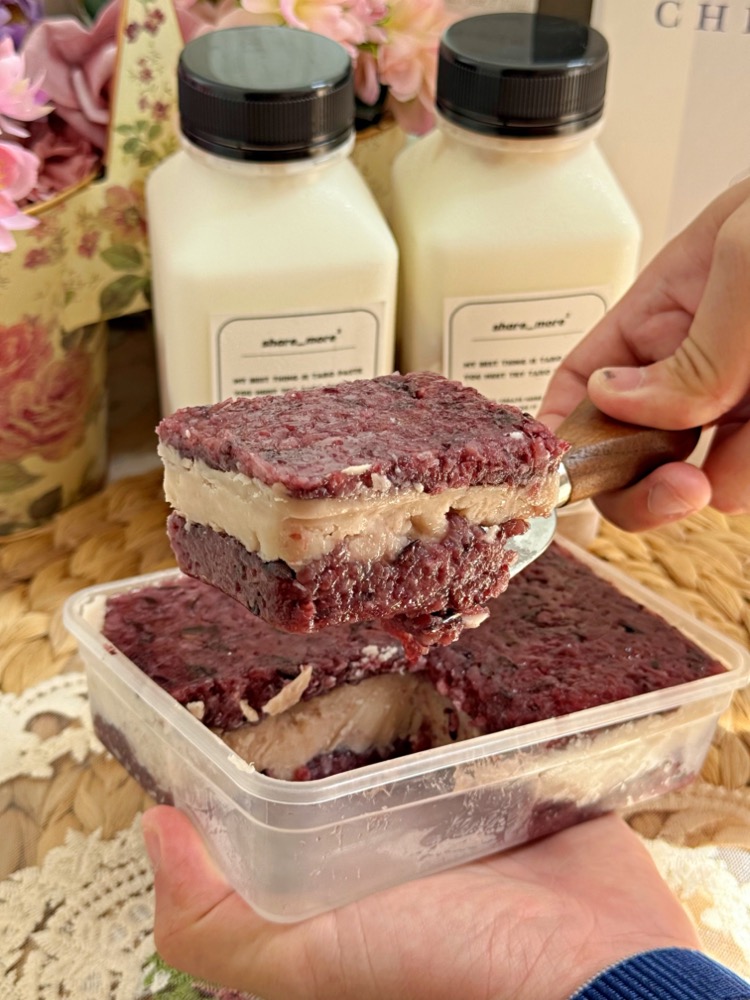 紫米糕口感很Q,中間夾著滿滿芋泥,整體甜度不高,家裡長輩很喜歡這個口感!