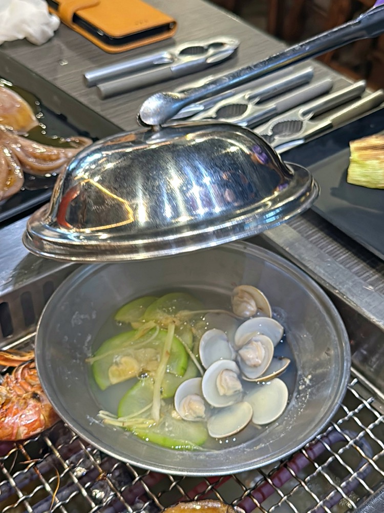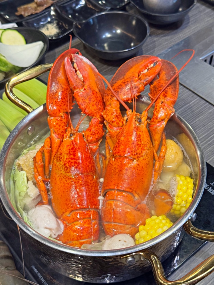 波士頓龍蝦可以先放入火鍋裡面煮熟,再放到烤網上烤一下就很美味!