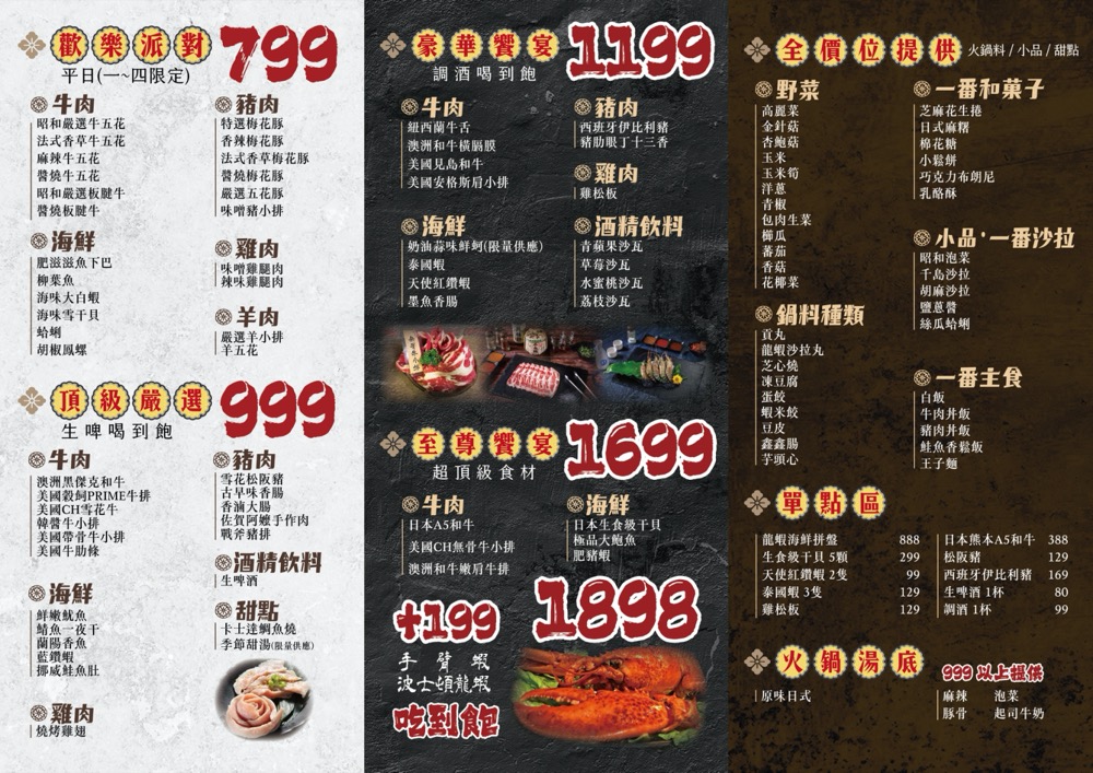 平日週一~週四限定歡樂派對$799就有牛豬雞羊海鮮可以選擇