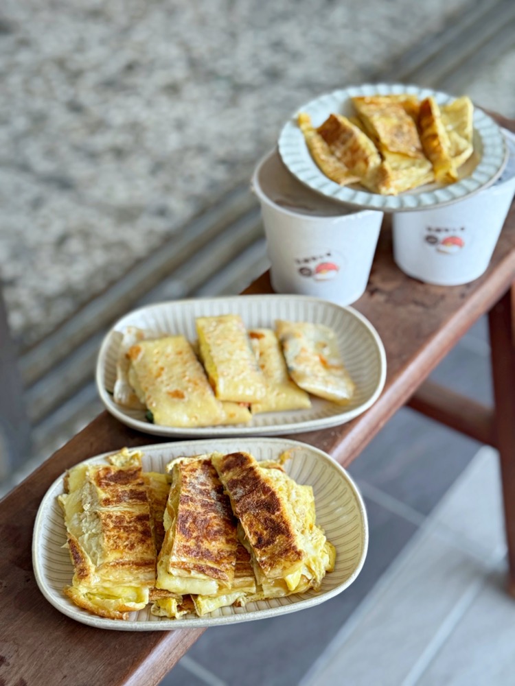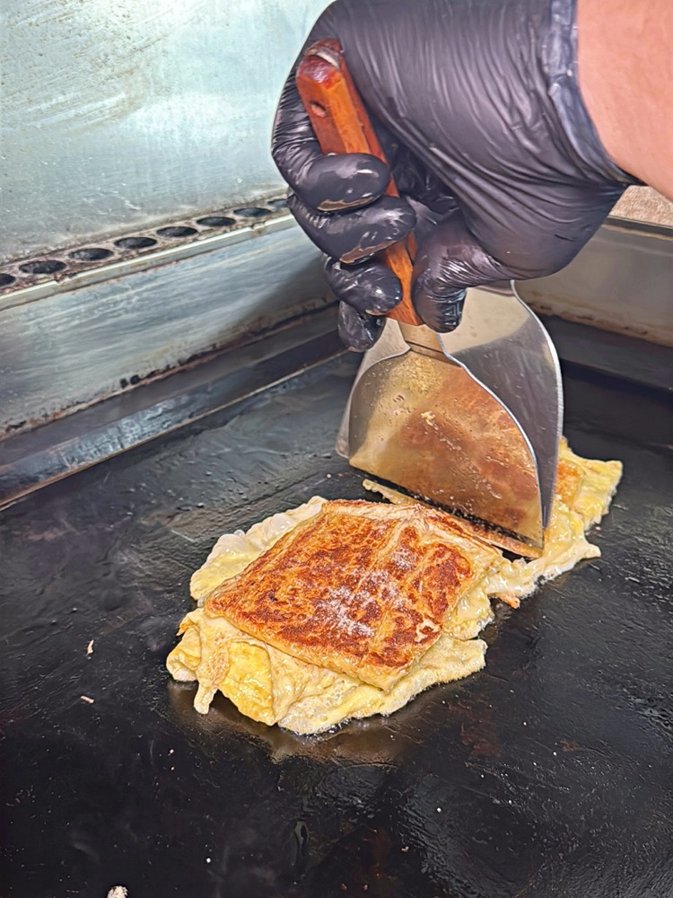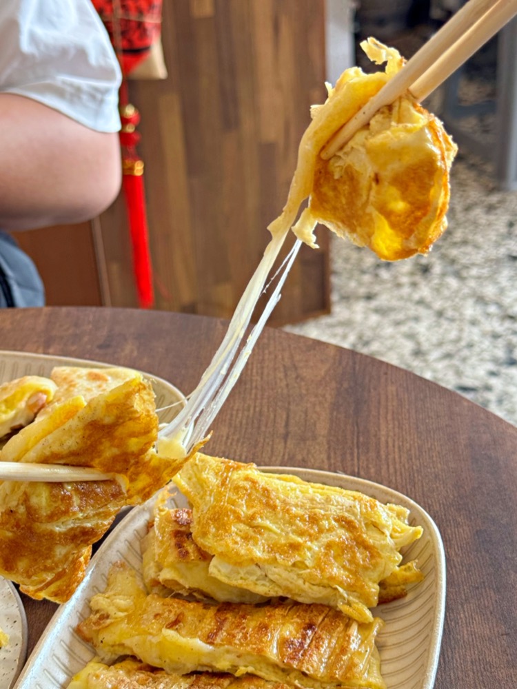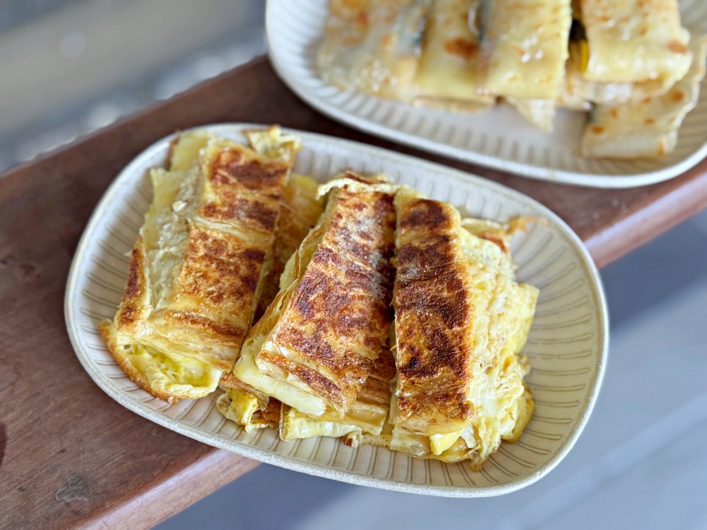 使用豆皮取代蛋餅皮,裡頭打了兩顆蛋份量十足!