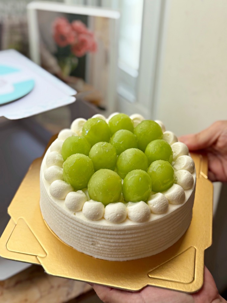 蛋糕裡頭有兩層內綠葡萄,所以幾乎是每一口都可以吃到軟綿的蛋糕體與綠葡萄清脆的口感喔